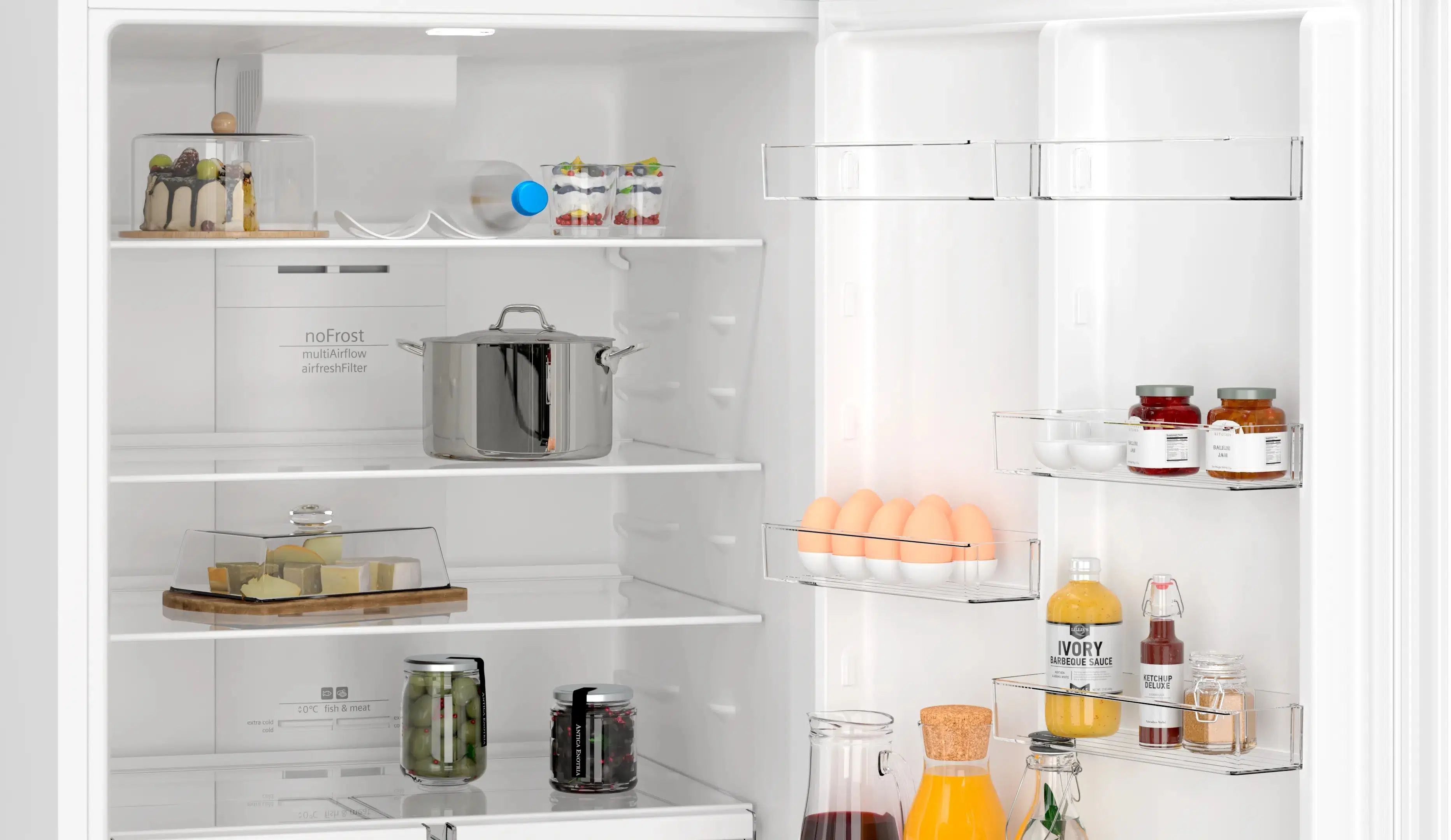 multiAirflow, buzdolabındaki hava dolaşımını olağanüstü bir şekilde iyileştirir. Sıcaklık ve nem seviyelerini düzenleyip buğu birikimini önleyerek, yiyeceklerinizin ilk günkü tazeliğini daha uzun süre korumasını sağlar.