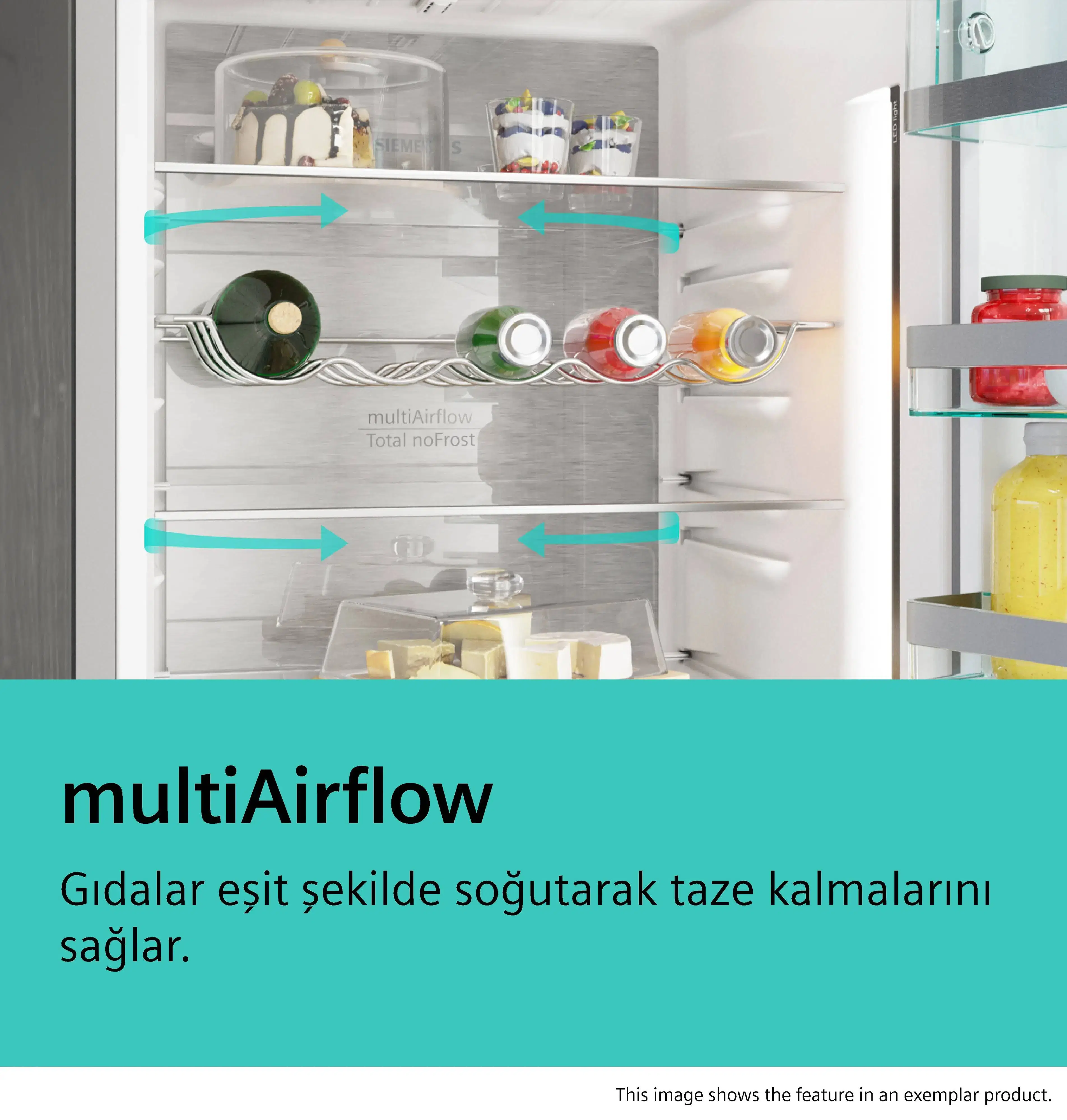 multiAirflow: Daha uzun süre tazelik için ısı dalgalanmalarını en aza indirir ve soğutma süresini kısaltır.